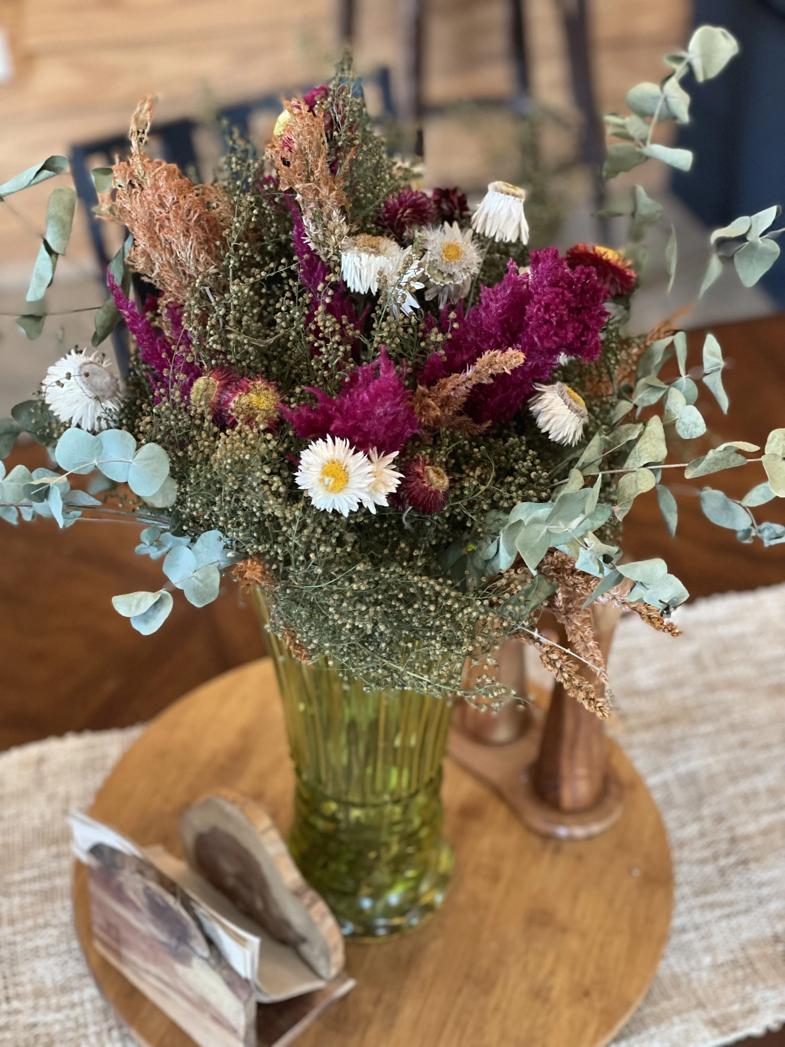 Dried arrangements don’t require any perfection; a little wildness adds charm and authenticity to the seasonality of the arrangement.
